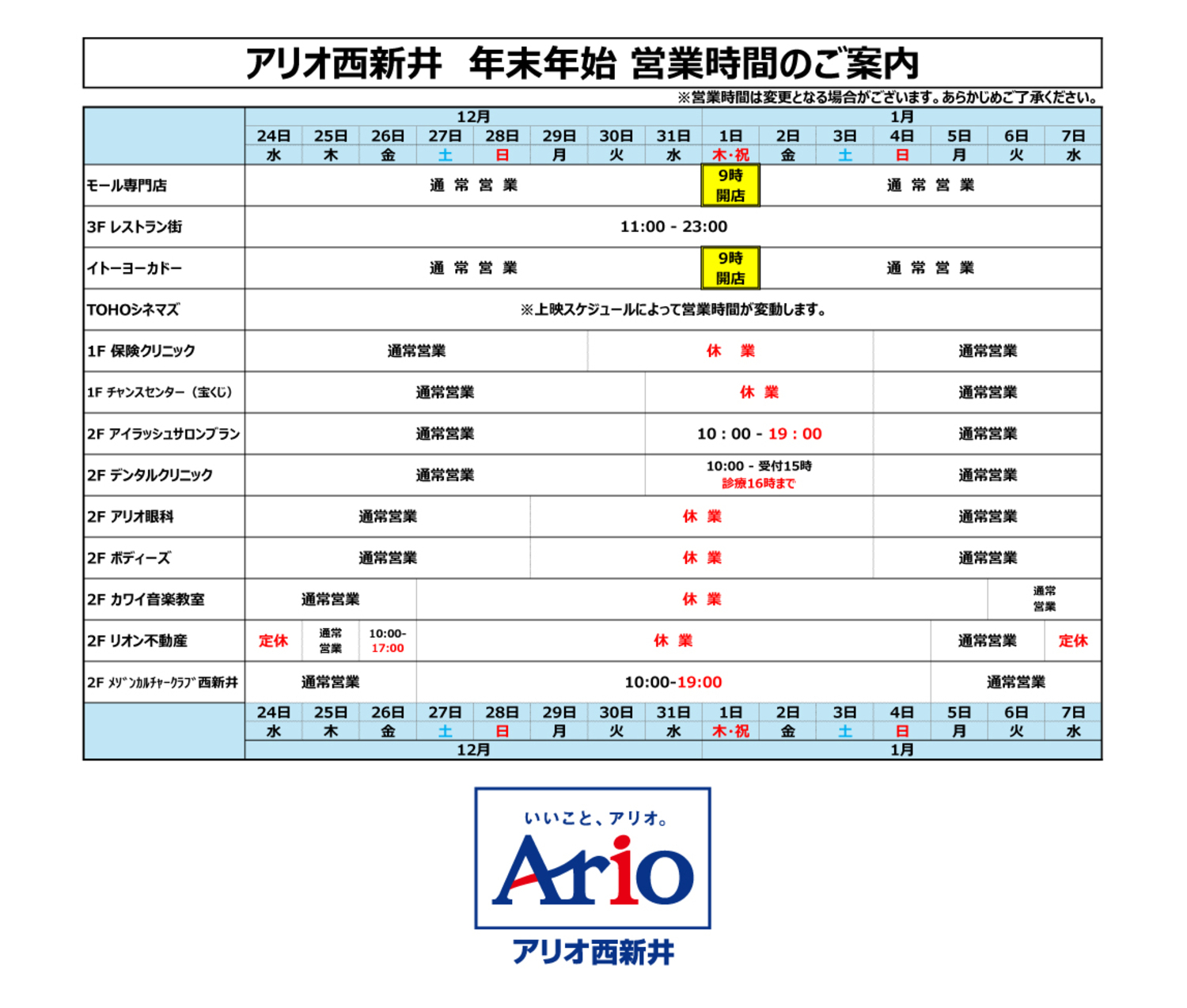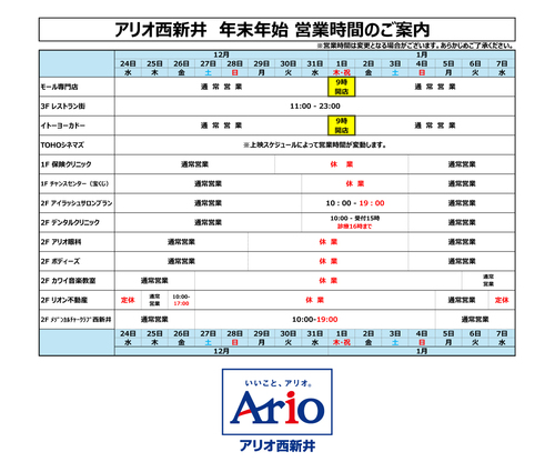 ※一部店舗は休業、営業時間が異なります。詳しくは下記の「年末年始 営業時間のご案内」をご確認ください。