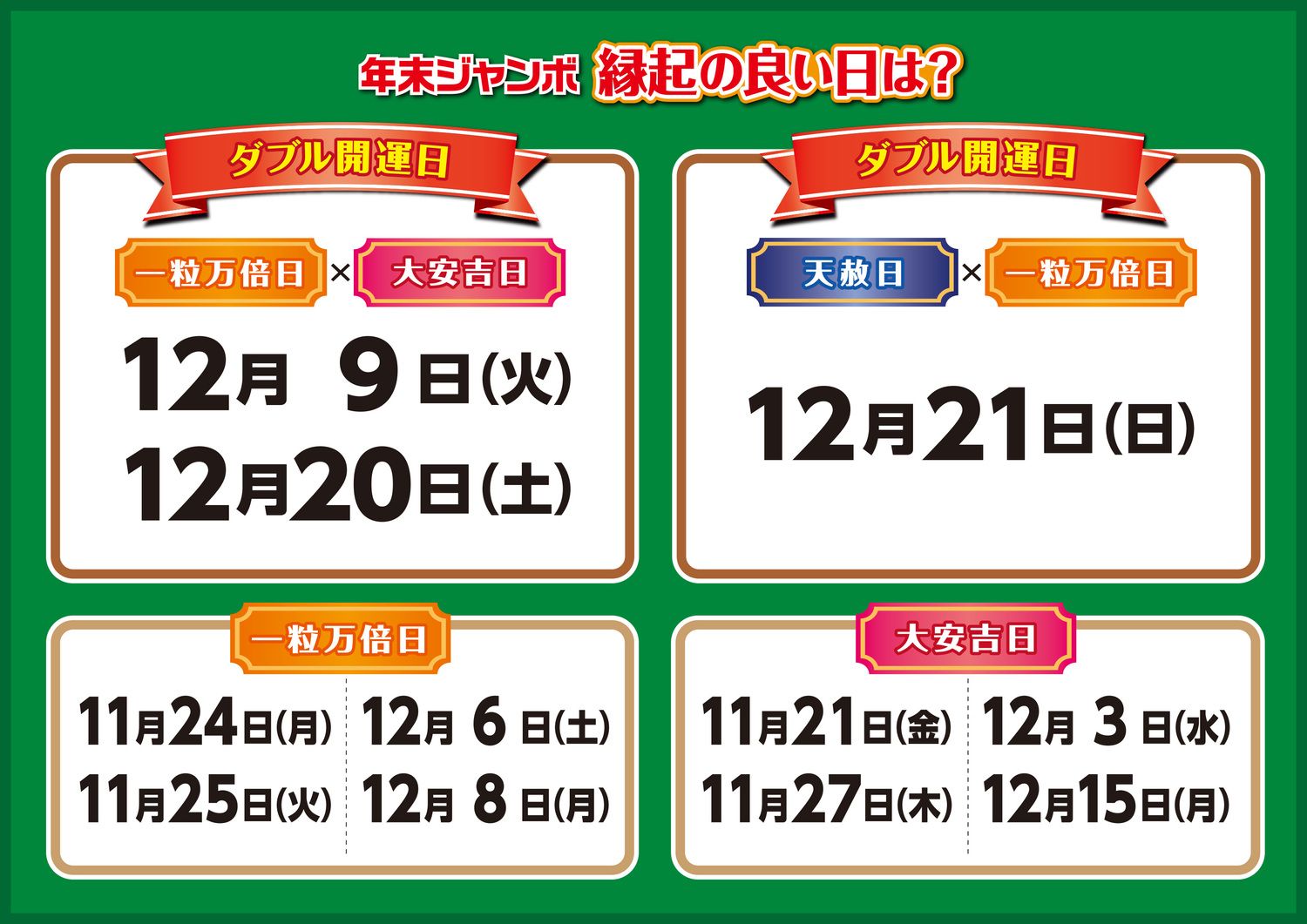 ◆年末ジャンボ発売中の縁起の良い日は?