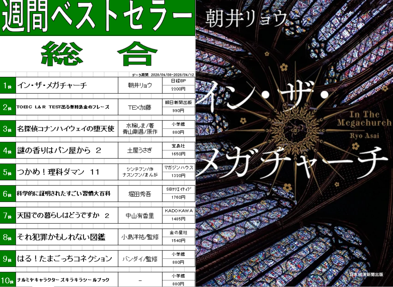 第1位は2026年本屋大賞受賞作『イン・ザ・メガチャーチ』(朝井リョウ)でございます!!